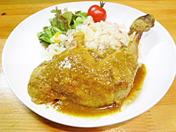 ホロホロ鳥のグリル焼きカレー風味ピラフ添え